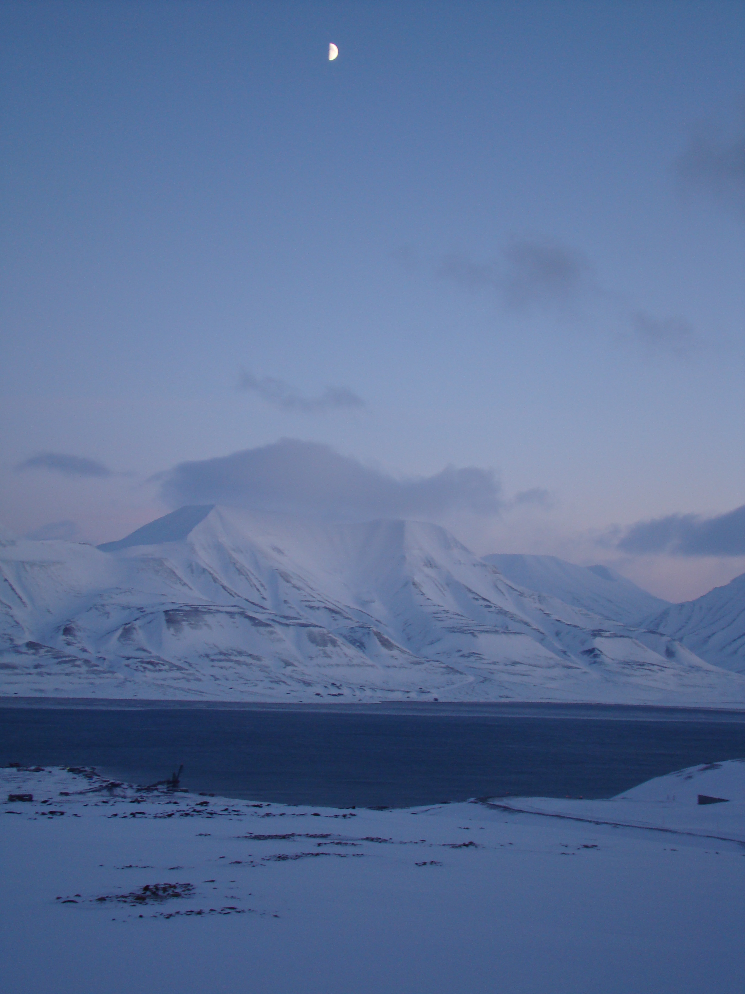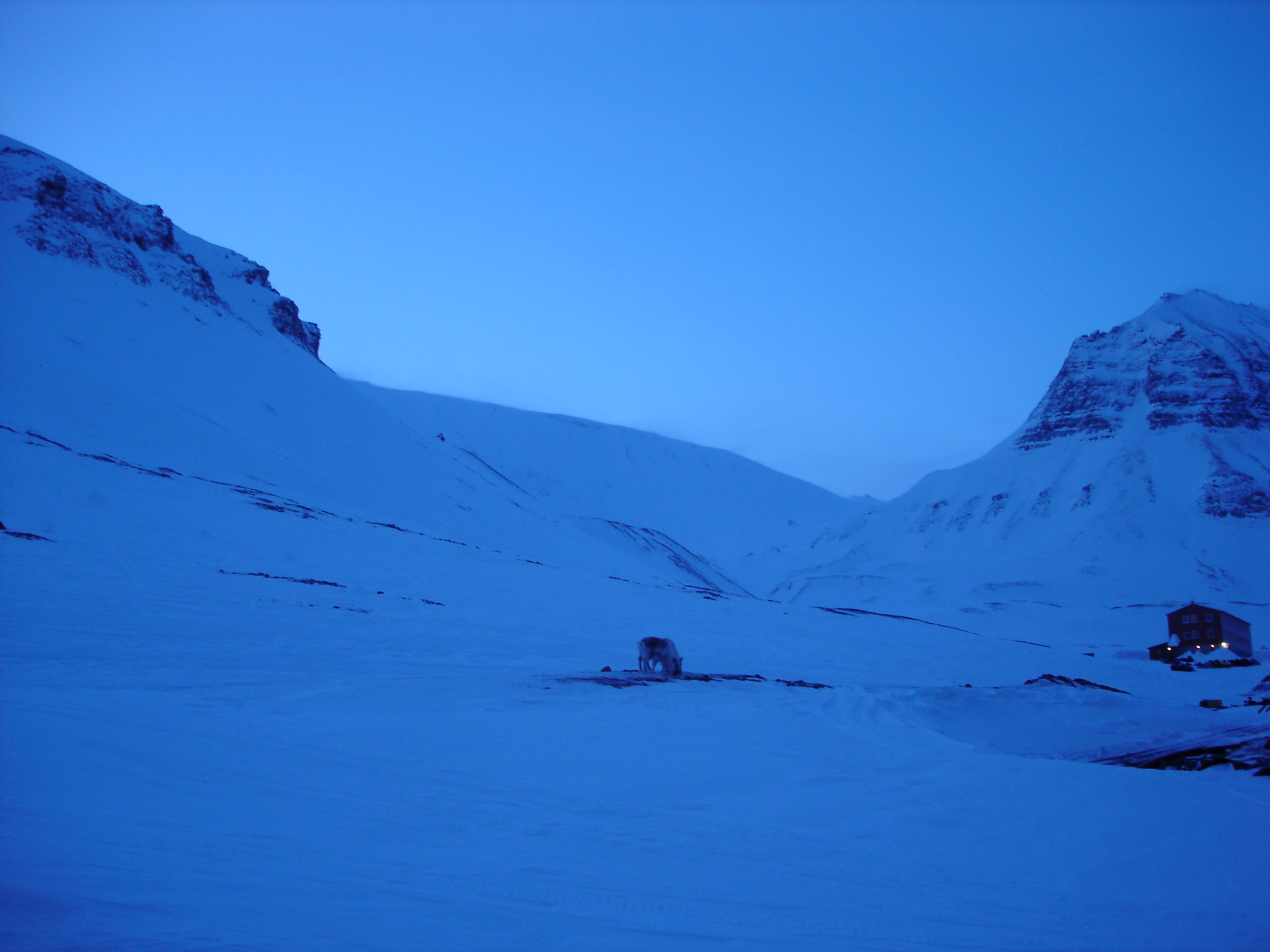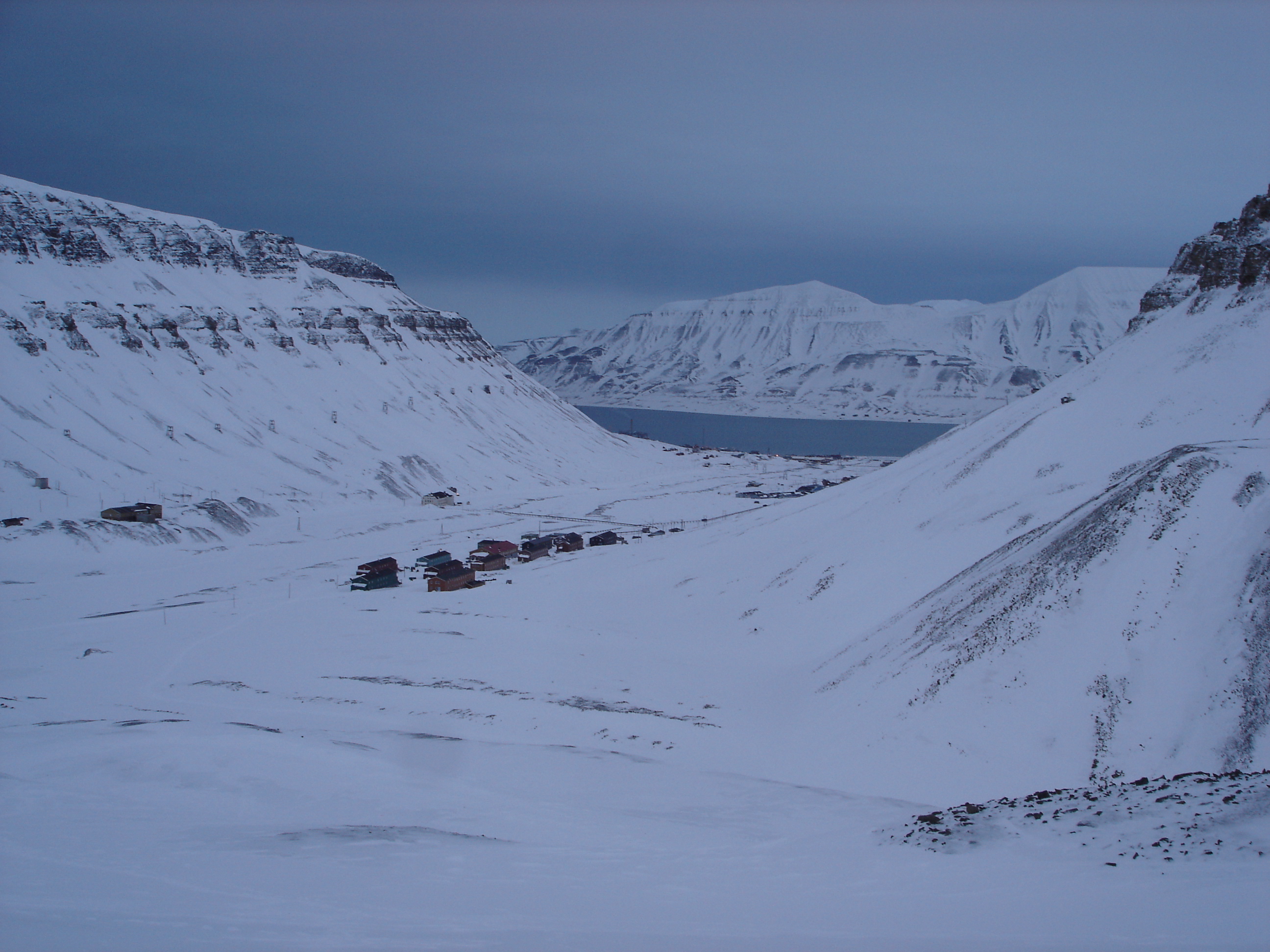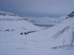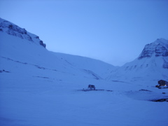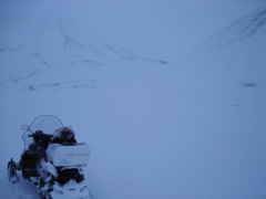 Lucky for me, I found myself first in line behind Jorgen as we ventured away from the new and lavish logistics facility at UNIS into the Arctic wilderness. The views were incredible. We cruised across Adventdalen, the wide valley that is seen to the northeast of Longyearbyen. As we crossed the valley, the mountains in front of us grew larger and larger, and and the darkness over the fjord became much more pronounced. I couldn't believe my eyes.