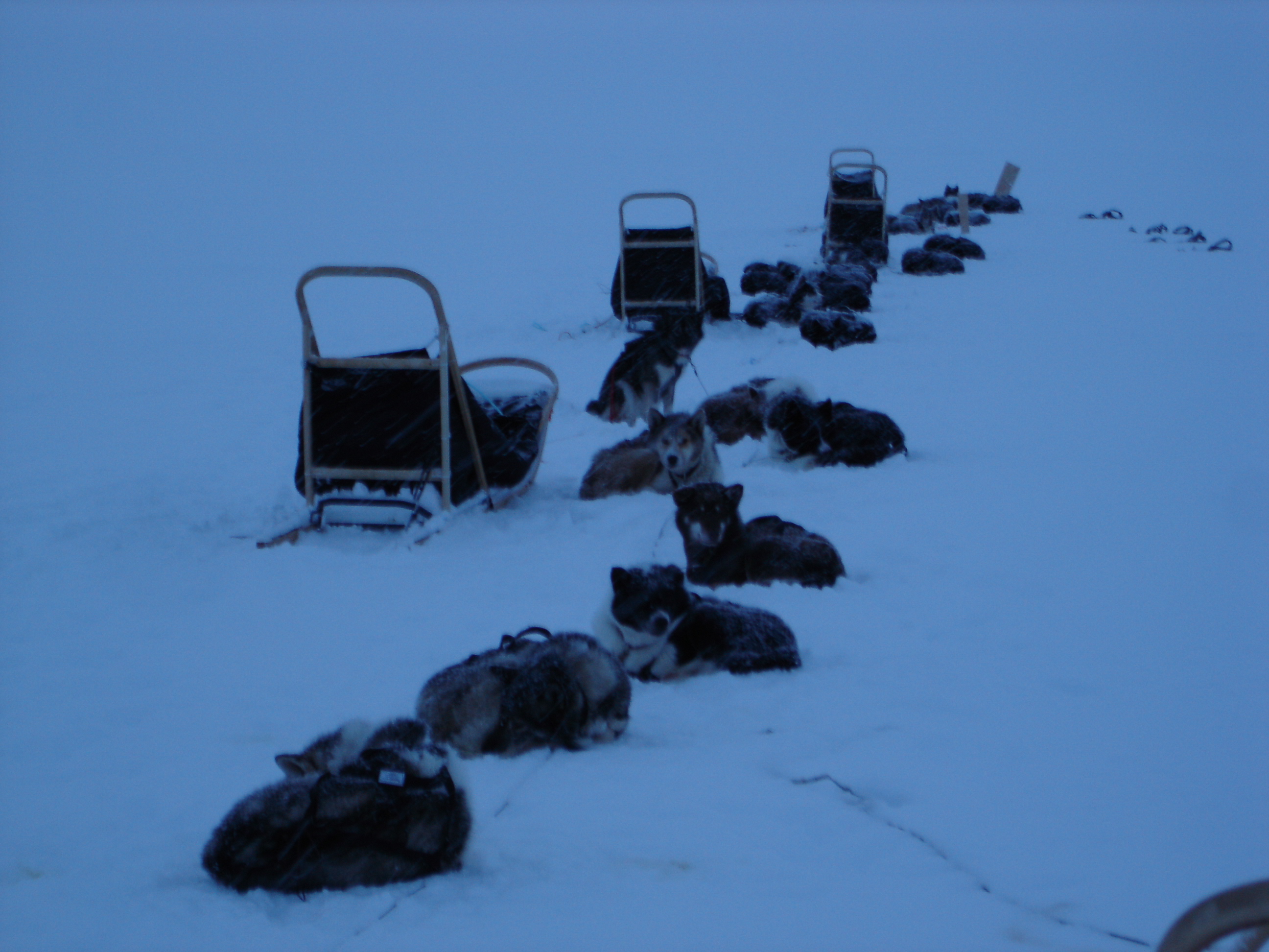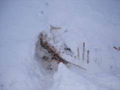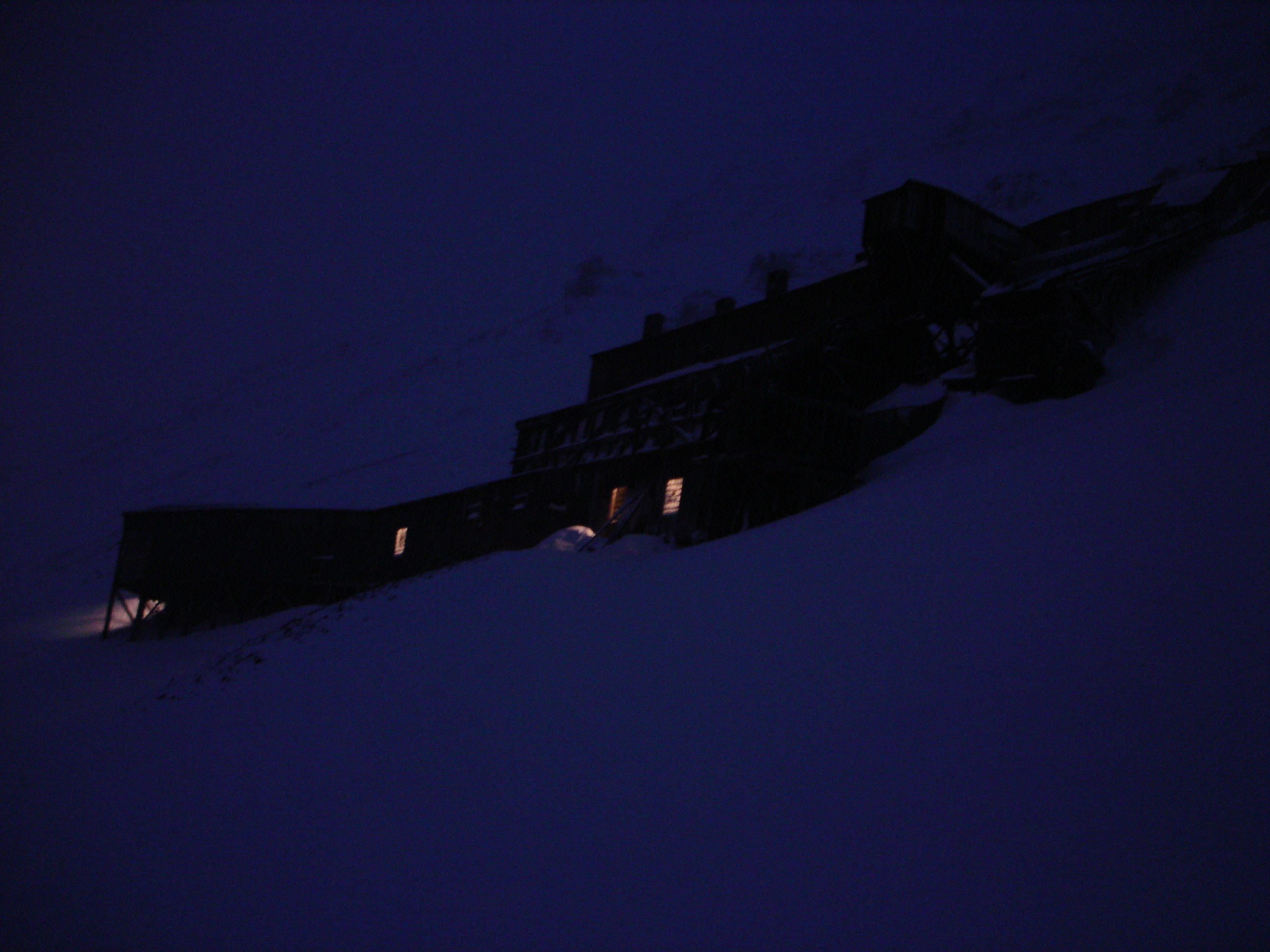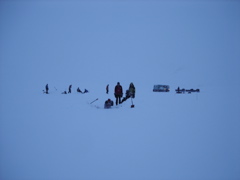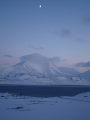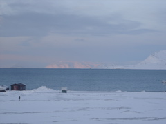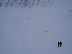We stopped a couple times to let the long line of scooters catch up so the group could get together. Jorgen and John showed us how to both get a scooter stuck and how to get one free or dig it out–something we'll no doubt have to deal with. I've heard from several people who have lived here for a long time that the large amount of snow Svalbard is receiving this year (a likely a sign of climate change?) is highly unusual–and that makes scooter use more difficult. In fact, the fjord in front of Longyearbyen, " Isfjorden" (Ice fjord) its completely free of ice this year. People commonly cross the ice in places to access areas all over Svalbard, but cannot in many places this year, making travel in some cases much longer and much more challenging.