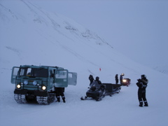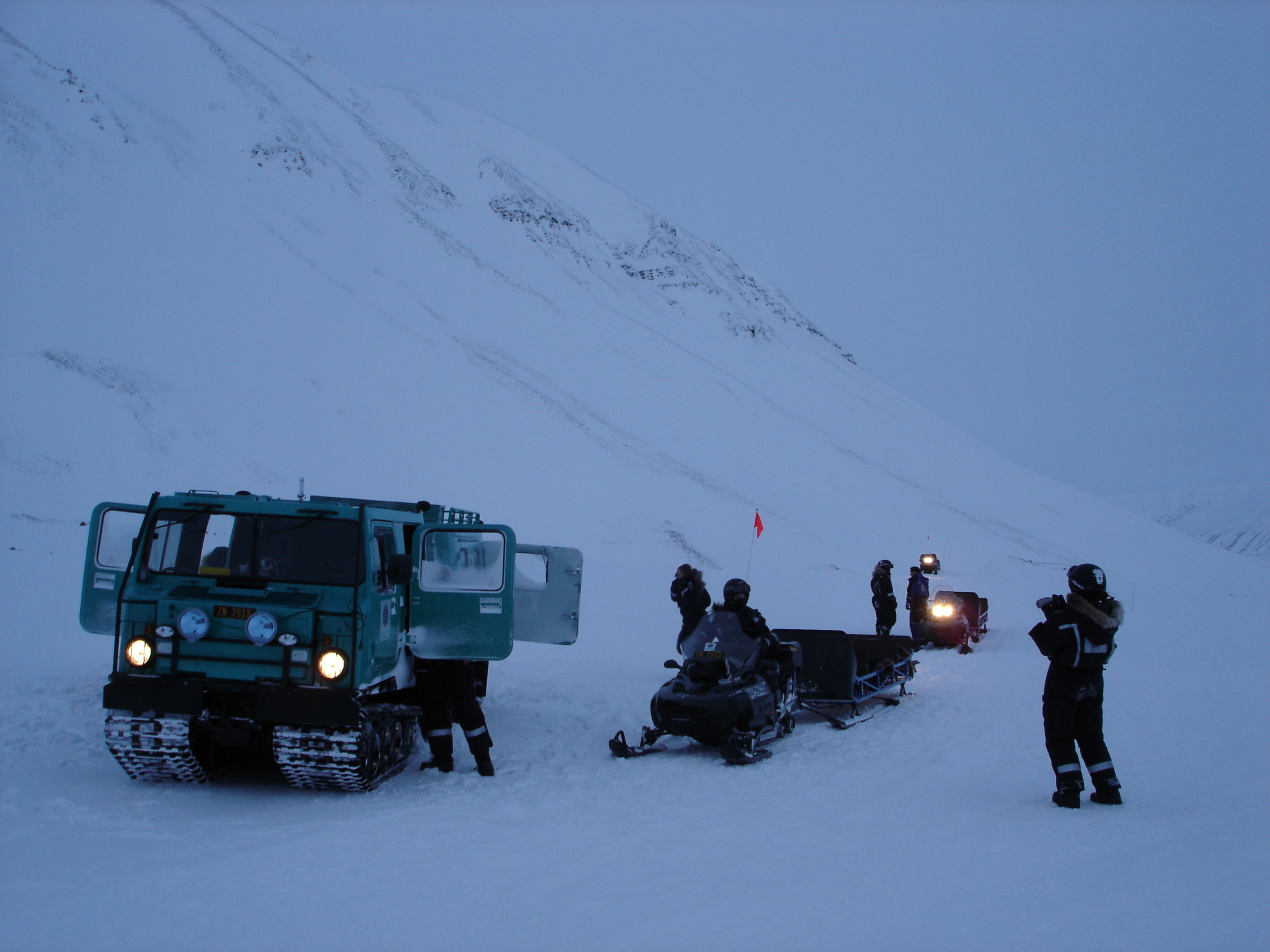 (there are huge chunks of Svalbard managed as wilderness and national parks). Fred emphasized that scooter use is the most dangerous aspect of field work here by far, and that they are prone to breakdowns because of the cold temperatures, so we discussed at length the troubleshooting and repair of scooters. For example, one problem that commonly happens is a broken drive belt. He showed us how to replace it and asked each of us to take the belt off, and put it on. Even though I've not done it before, it was easy for me, because I've replaced a lot of belts on variable speed pulleys at the farm on our combines and swathers. And the "dump a little gas in the sparkplug if your engine is not starting trick" also rang bells because I've done that one before too. Its interesting how all that farm and ranch experience is coming in handy up here. I couldn't help wondering how easy it would be during a blizzard at -25˚C though...