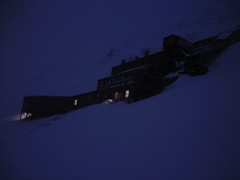 Alas, our group's chance to get outside for the first time and ride the scooters came. I was really excited. After gathering all the proper scooter gear which included heavy boots, suits, liner gloves and mittens, helmuts, balaklavas, and goggles, everyone strapped a transceiver to their bodies. This is a tool to actively track people if a safety issue arises or if you can't make it home as planned (like if you get lost, are stalled by a giant blizzard, fall into a crevasse on the glacier, or if you get eaten by an isbjorn). The last thing we did was sign our names and info onto the excursion safety sheets (protocol before every outing) so that if something did go wrong they determine who was missing and could contact relatives quickly if necessary.