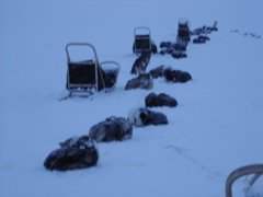 Up here, scooters (snowmobiles) are a very important part of life. They are one of the main modes of transportation, and not surprisingly, outnumber all the people in town. From very early in morning to late at night, one can hear them roaring around, and the smell of 2-cycle engines abounds. You can buy them here ($20000), rent them at the scooter shop by the week on guided tours ($4000), or ride them for free roughly once a week during field work expeditions (weather permitting) as a student at UNIS. But before you ride as a UNIS student, you must be trained first.